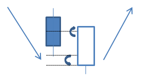 • si la apertura de la segunda vela se produce por debajo de un soporte y el cierre por encima del mismo, significa que la fuerza bajista no ha sido capaz de defender la ruptura del nivel, y es aun más positivo.