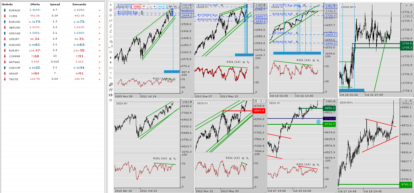Repaso de 4 divisas, 4 índices de bolsa, 4 “commodities” y el Bund, con apertura de posiciones nuevas!