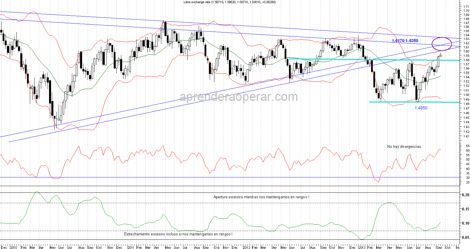 Han pasado unos días desde que comencé a explicar como buscar el posicionamiento a nivel intra-diario, cuando tenemos definida una idea de “trading”, tras haber analizado el entorno a medio y largo plazo de un mercado. A continuación podéis ver como analizar la situación si transcurrido un tiempo, el mercado no ha roto ningún nivel importante que haya acelerado el movimiento previsto. Vuelvo a comentar tanto el Euro contra el Dólar, como la Libra contra el Dólar. La intención es ver de que manera implementar una visión de fondo de manera dinámica en función de lo que va haciendo el mercado.